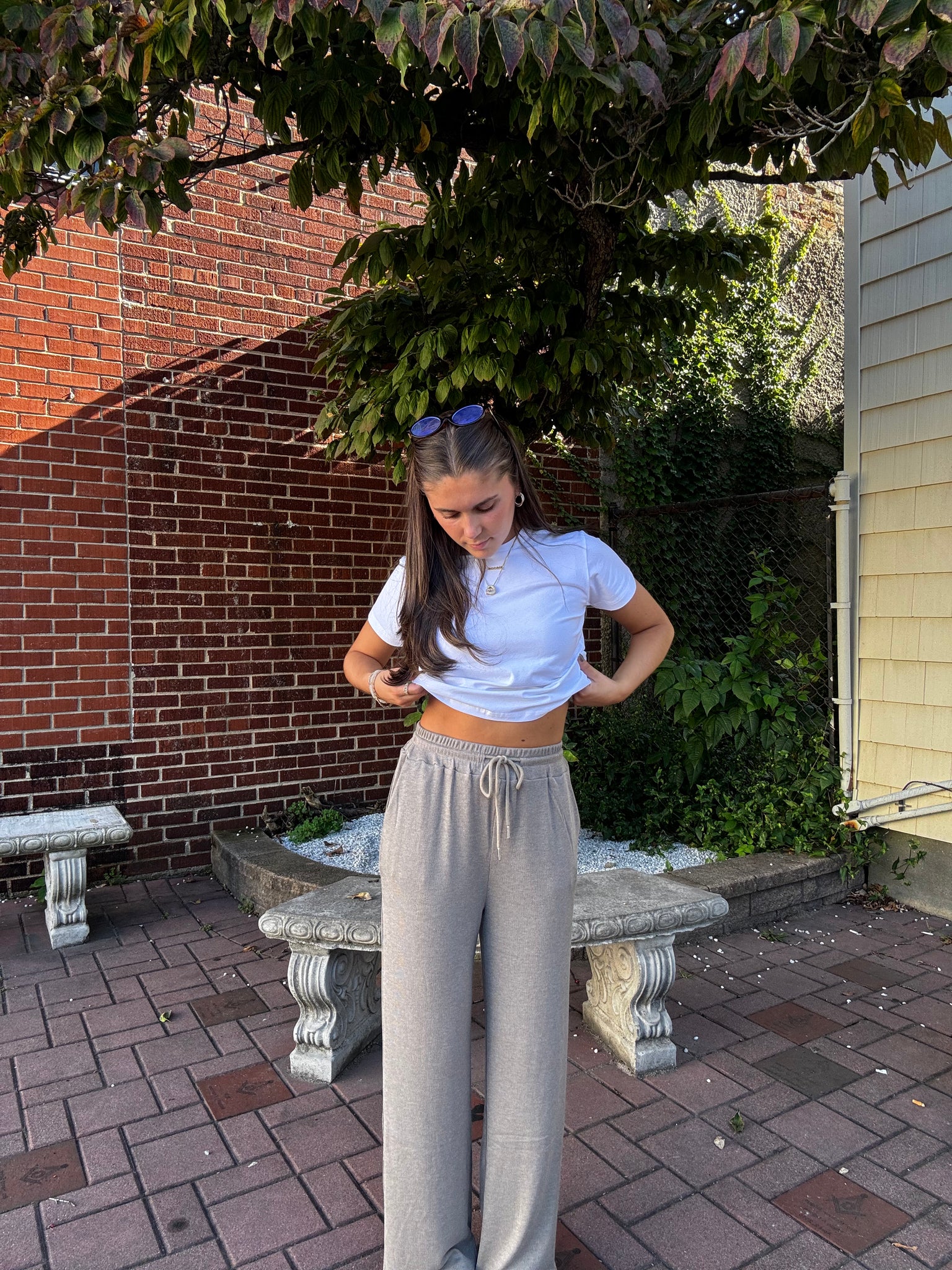 Relaxed fit high waisted ribbed knit pants.Elastic waistband with drawstring fastening Side pockets Unlined.