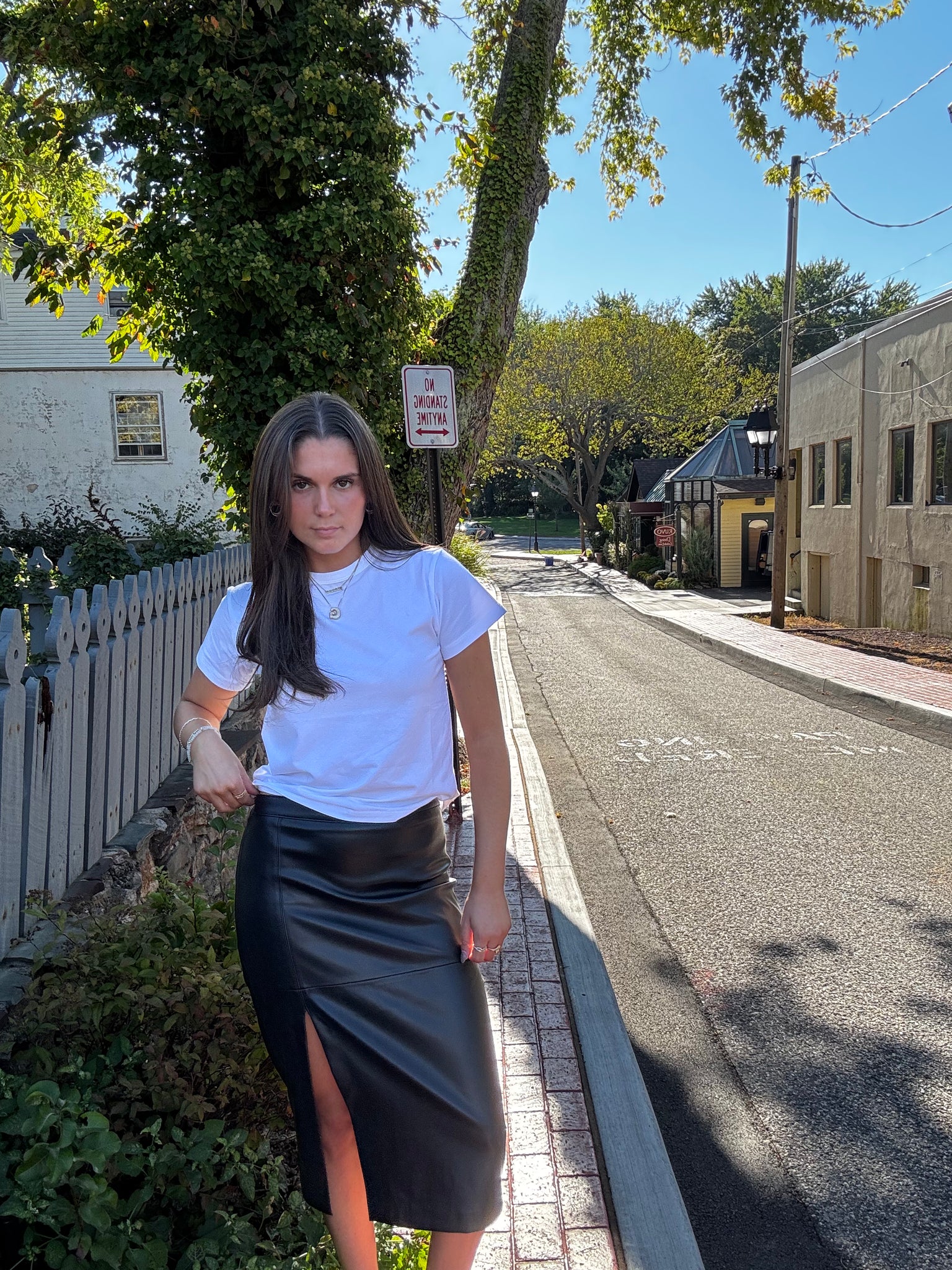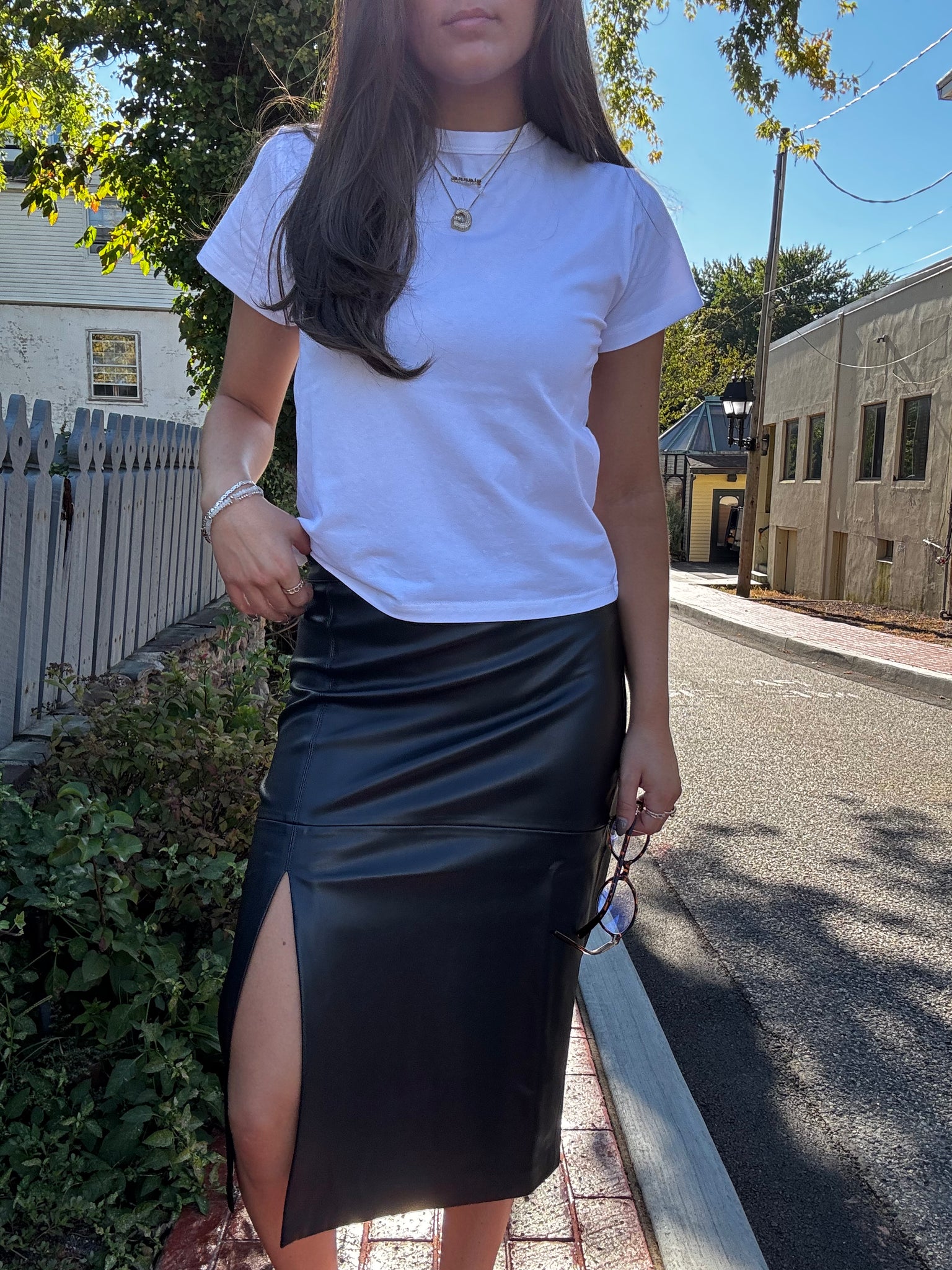 Midi skirt with a front side slit Side slit Hidden side zipper closure no lining