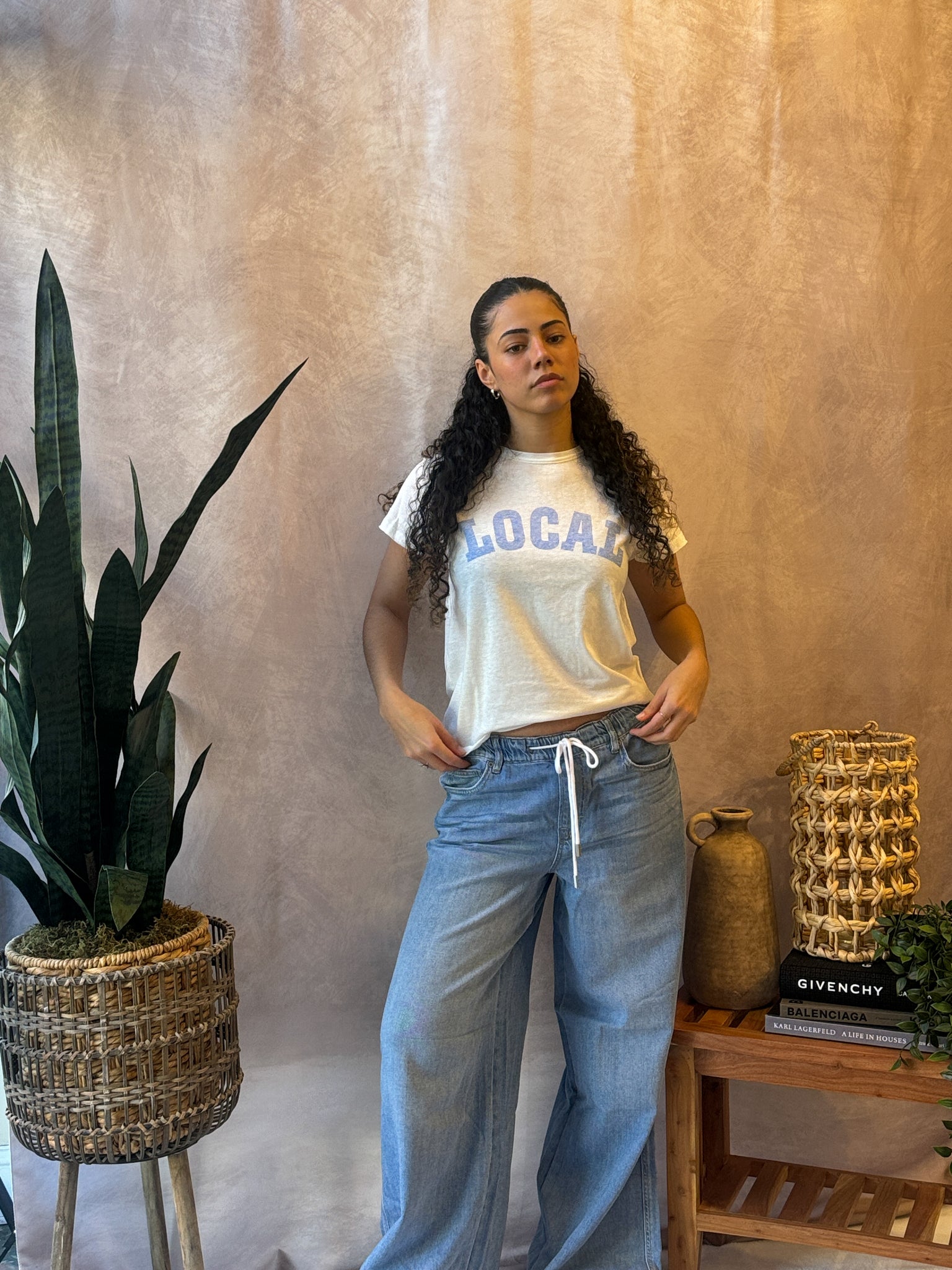 super lightweight wide leg jean with drawstring waistband and soft elastic
