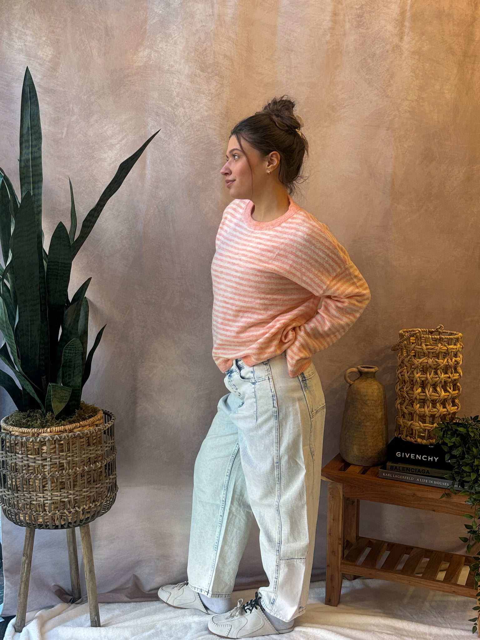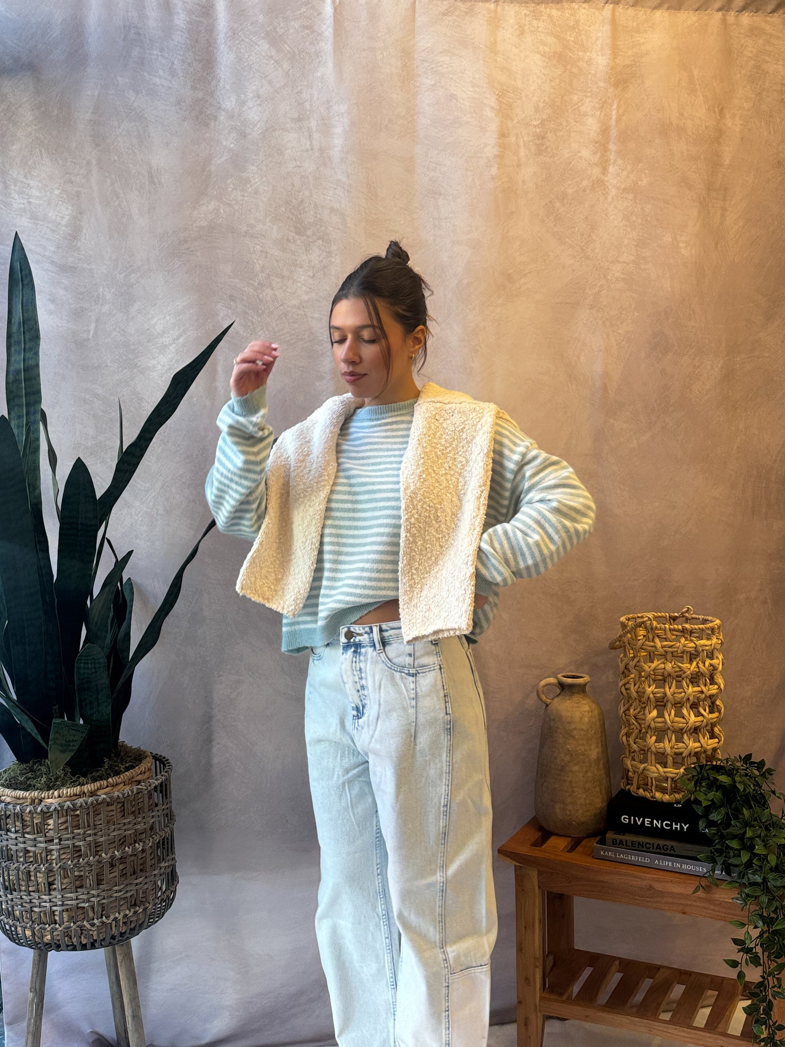 Stripe Knit Top features a lightweight wool mixed knit fabric which gives you a breathable, comfortable everyday feel and a classic crew neckline for an easy, timeless silhouette.