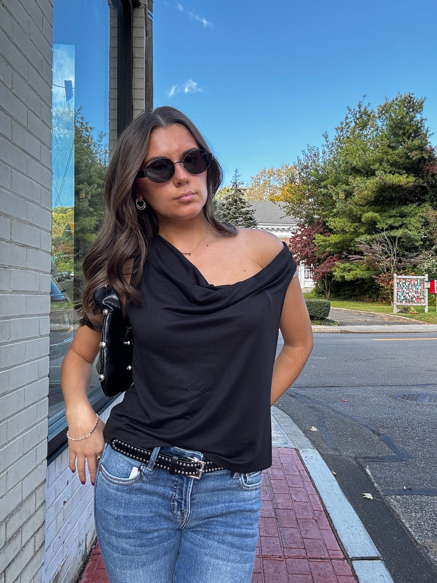 Knit Polyester Spandex Sleeveless Cowl Neck Top