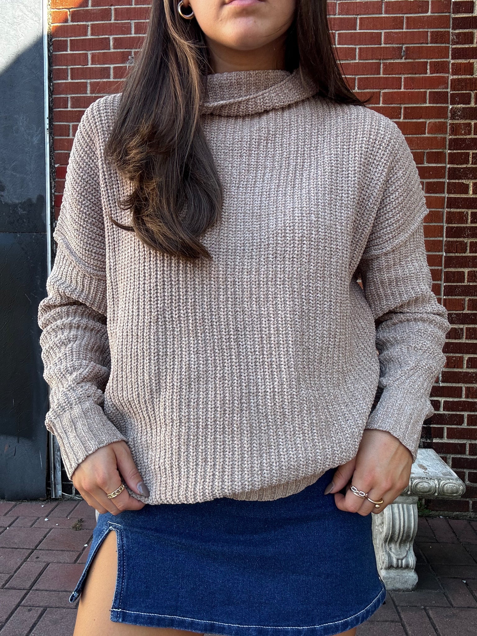 Chenille High Neck Sweater Top