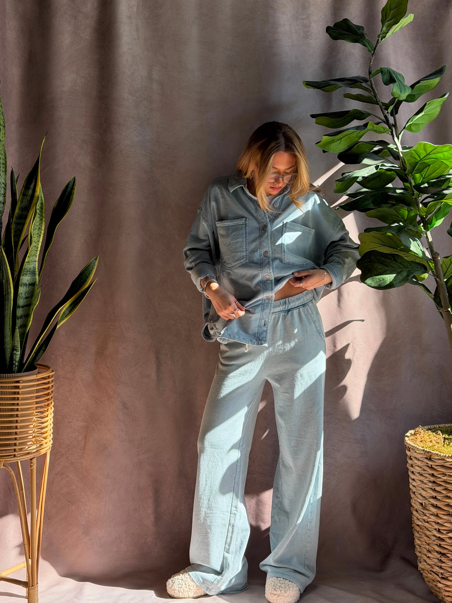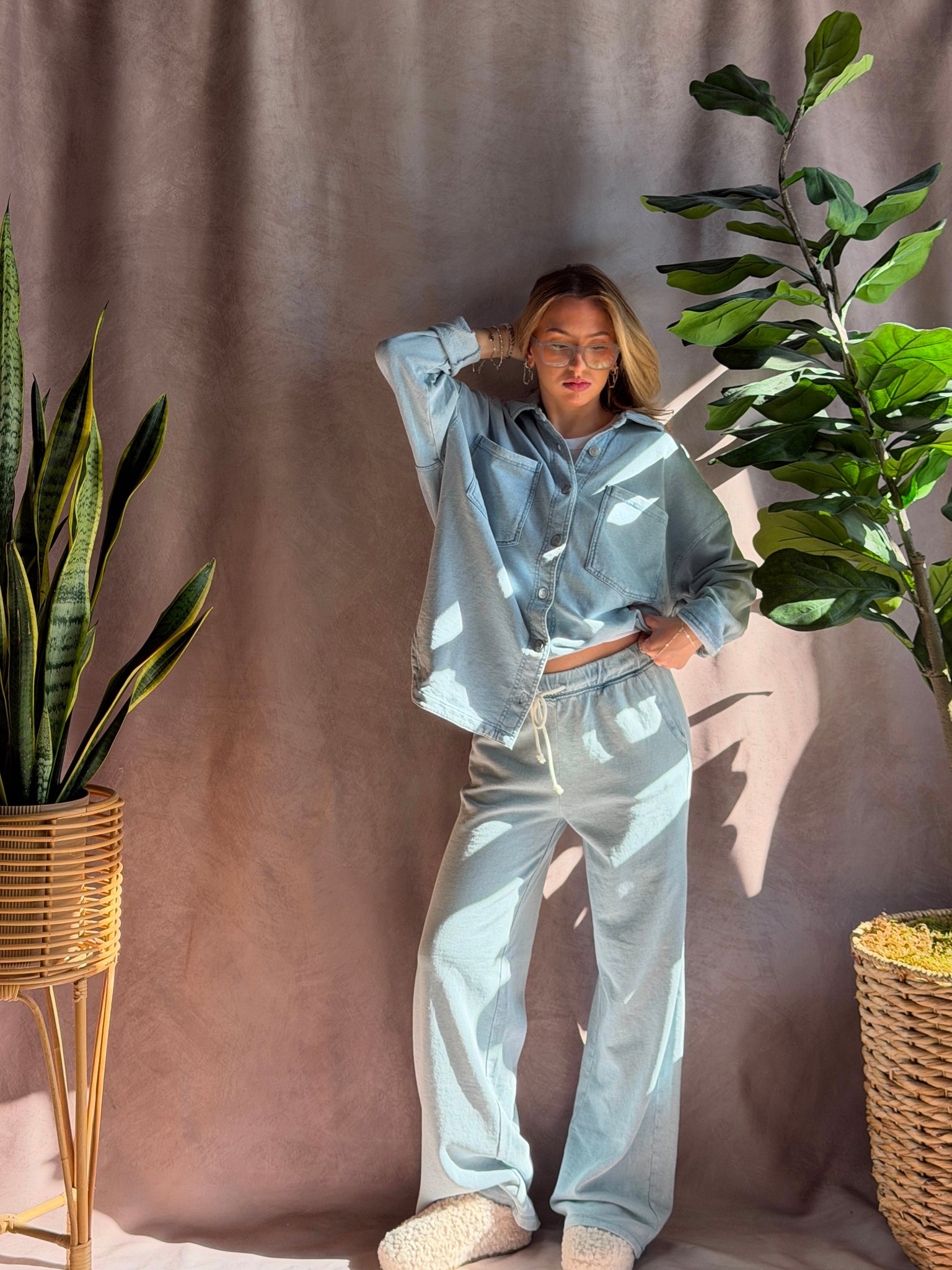 Our All Day jacket is a best seller, especially in our knit denim french terry fabric. This relaxed shirt jacket can be worn open or buttoned for a versatile layer you'll want to live in all year.