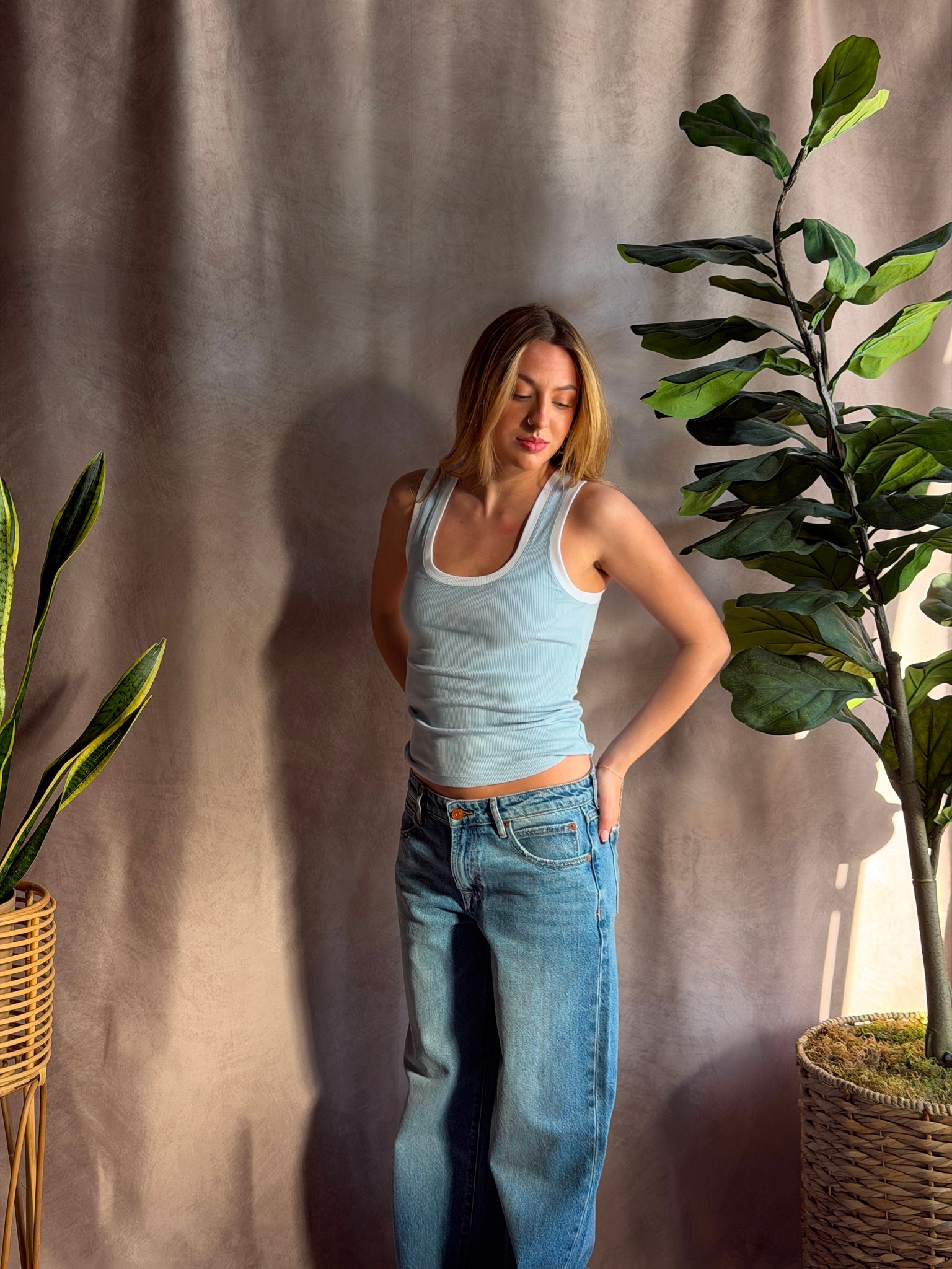 Made to wear everyday, this rib tank is a closet staple that features a flattering scoop neck and bra-friendly wide straps. We like the Sirena tucked into high waisted denim, cute and effortless.